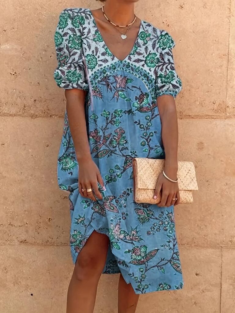 Jerica – Vestido casual de flores con mangas abullonadas