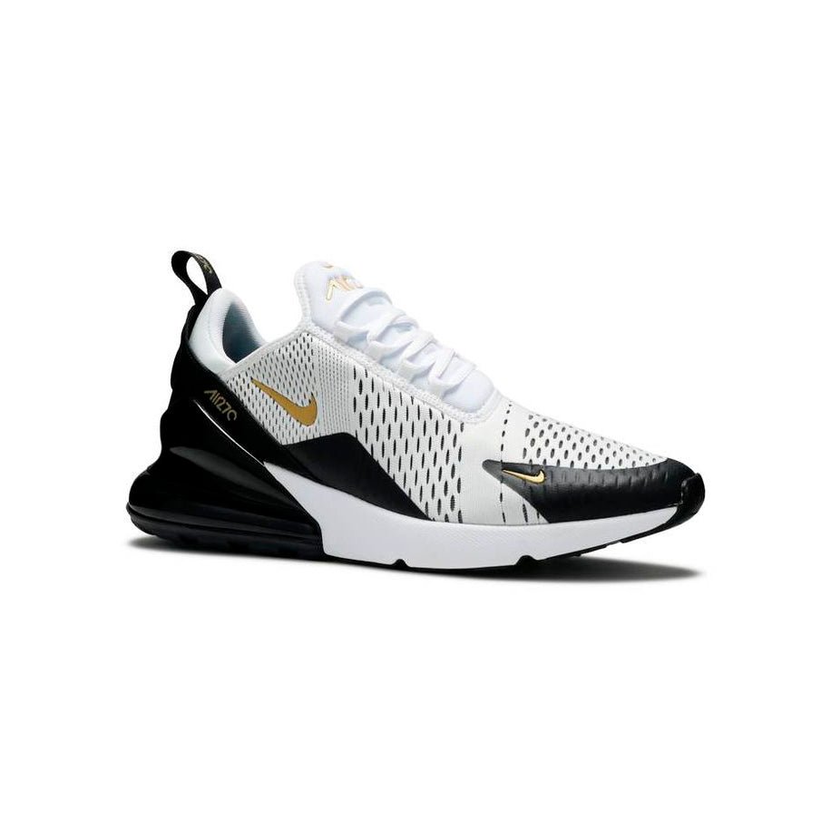 ¡Consigue ahora las Zapatillas Nike Air Max 270 Blancas Negro y Dorado Metálico Hombre y camina con estilo, tecnología y confort en cada paso!