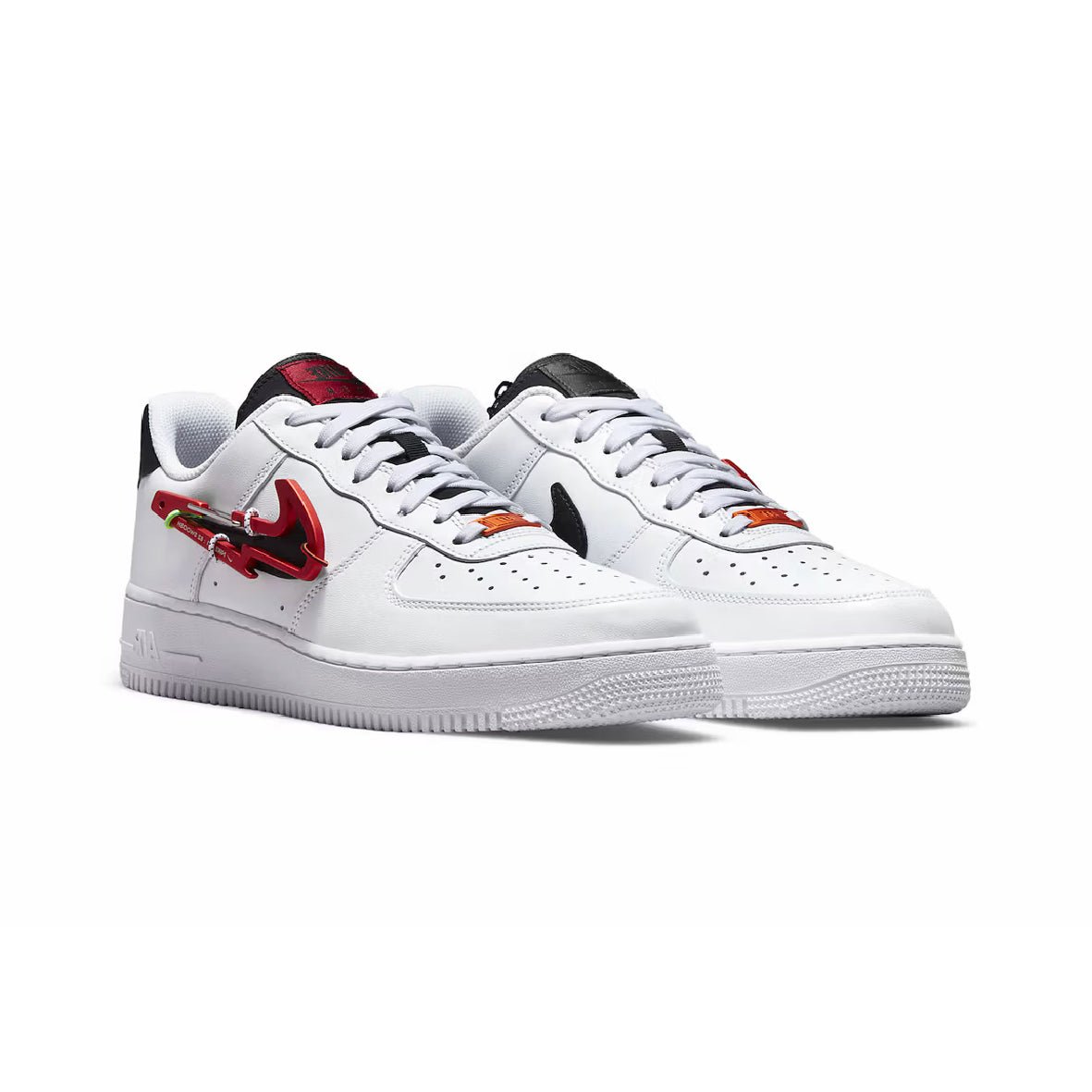 Las Zapatillas Nike Air Force 1 Low Carabiner Swoosh Blancas Hombre Edición Especial reinventan el clásico de Nike con un atrevido y moderno giro. Su característica más llamativa es el Swoosh con mosquetón (carabiner), que aporta un toque decorativo y funcional nunca antes visto. El contraste entre el blanco limpio con los detalles en negro y rojo añade frescura y personalidad al modelo.