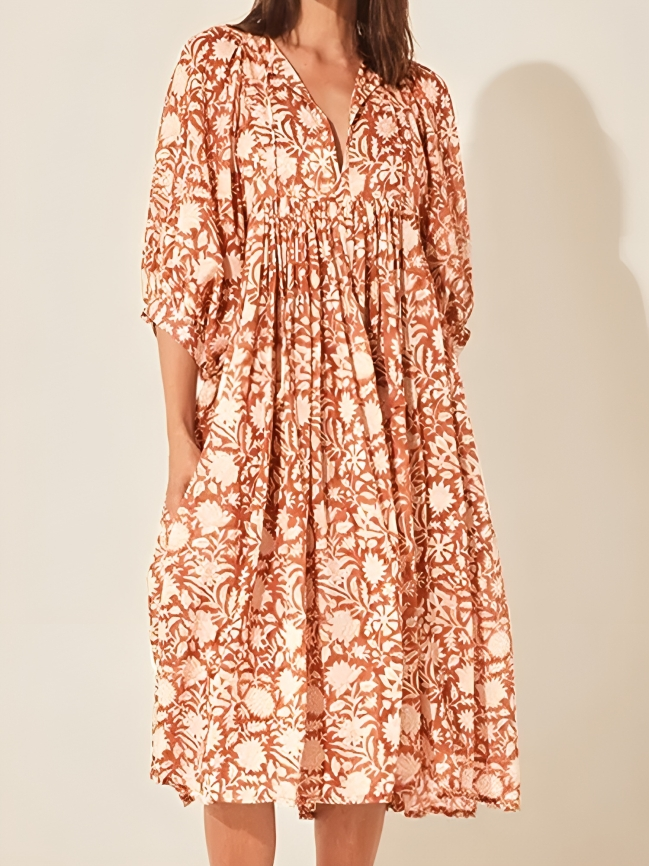 ¿Buscas un vestido que combine comodidad con un toque de elegancia? Este vestido casual suelto con mangas acampanadas y estampado floral es tu opción ideal. La silhueta fluida y las mangas acampanadas aportan un toque chic sin esfuerzo, mientras que el estampado floral le da un aire divertido y fresco a tu armario. Ya sea para hacer recados o para una salida de fin de semana, este vestido te mantendrá elegante y cómoda todo el día.