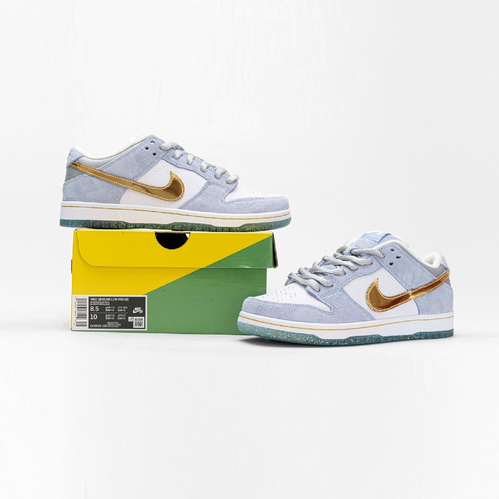 Las Nike Dunk Low SB Sean Cliver Azul Blanco Dorado Zapatillas Edición 2025 unen estilo y arte en cada paso. Diseñada por el icónico Sean Cliver, esta edición especial luce detalles dorados metálicos, un acabado de lujo, ante azul claro y base blanca premium que capturan todas las miradas. Perfectas para quienes buscan un diseño coleccionable y único para destacar.